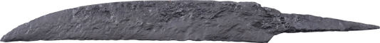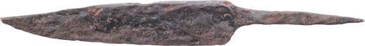 About 4” (3.92”) length with butted side seam conical socket, the bottom eroded, and thick medially ridged point of war/raiding weight, intended for attacking adversaries protected by the padded jerkins and leather of the period, and thus, for coastal raiding. Vikings raided coastal Mediterranean settlements capturing women and children who were sold into slavery in North Africa or returned with them to Scandinavia where they served their Viking masters.